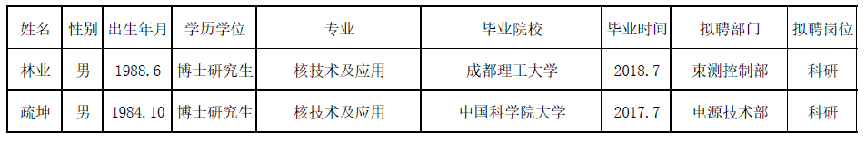 经公开招聘,拟聘用以下人员至上海光源科学中心相应部门工作。