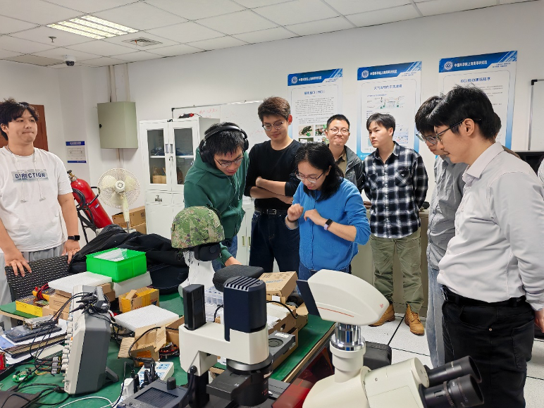 座谈结束后,在高研院团队的引导下,上海航天电子有限公司一行专家前往智能信息中心脑机接口实验室进行实地参观。考察团成员不仅认真聆听技术讲解, 还持续参与现场体验。大家亲自佩戴脑机接口设备,直观感受了脑机接口技术的前沿性与实用性。