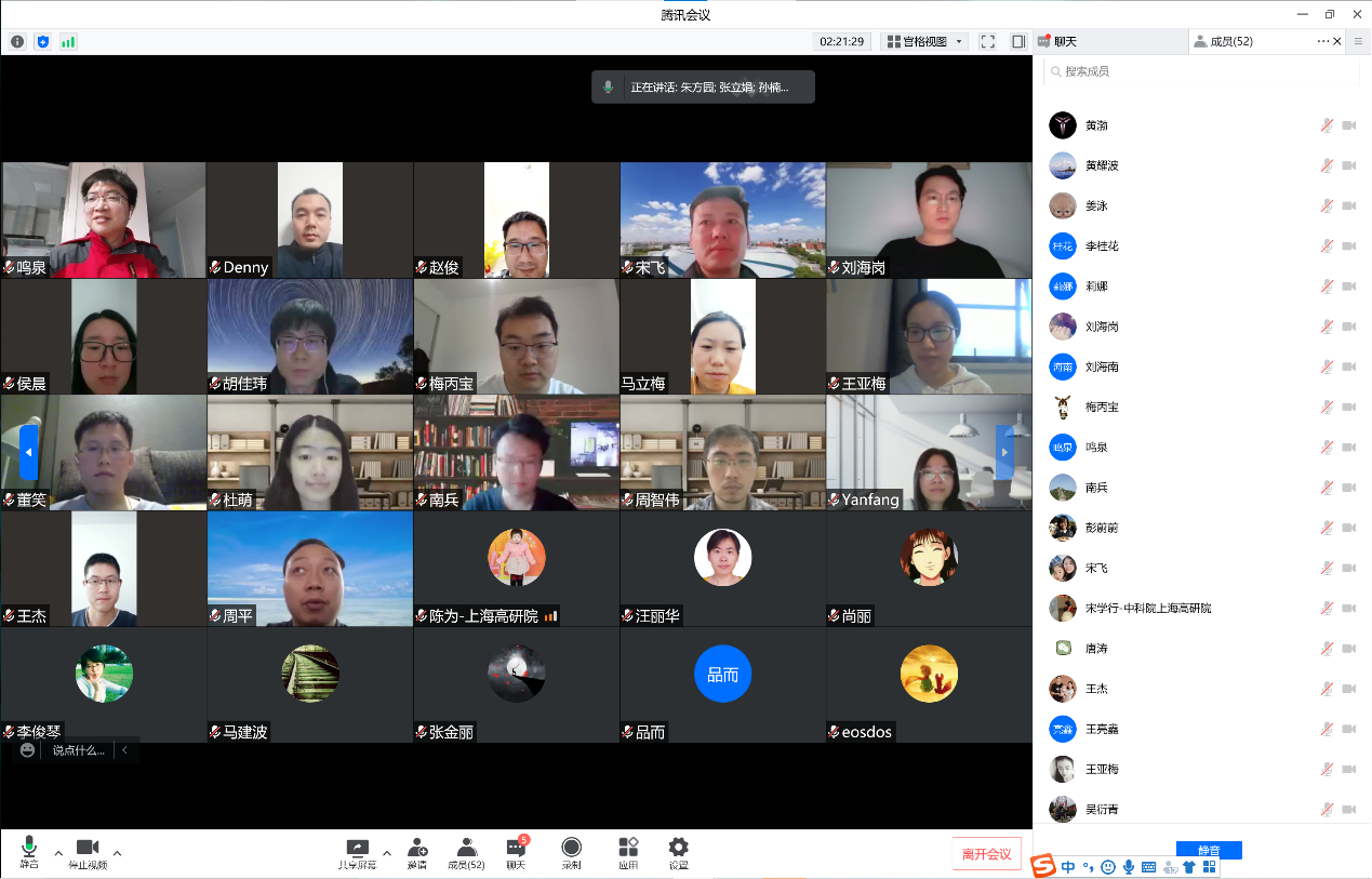 此次线上学术研讨活动以“‘疫’不容情,‘课’ 不容缓,建制化研究开讲啦!”为主题,分别研讨了两个支部的支部情况,并请两个支部的科研骨干分享了建制化项目涉及的线站实验方法学和材料研究进展,以期加强支部研讨和凝聚力,保证疫情期间科研任务的顺利执行。此次线上研讨活动由低碳第二团支部书记孙楠楠主持,吸引了两个支部党员、群众共计52人参与。