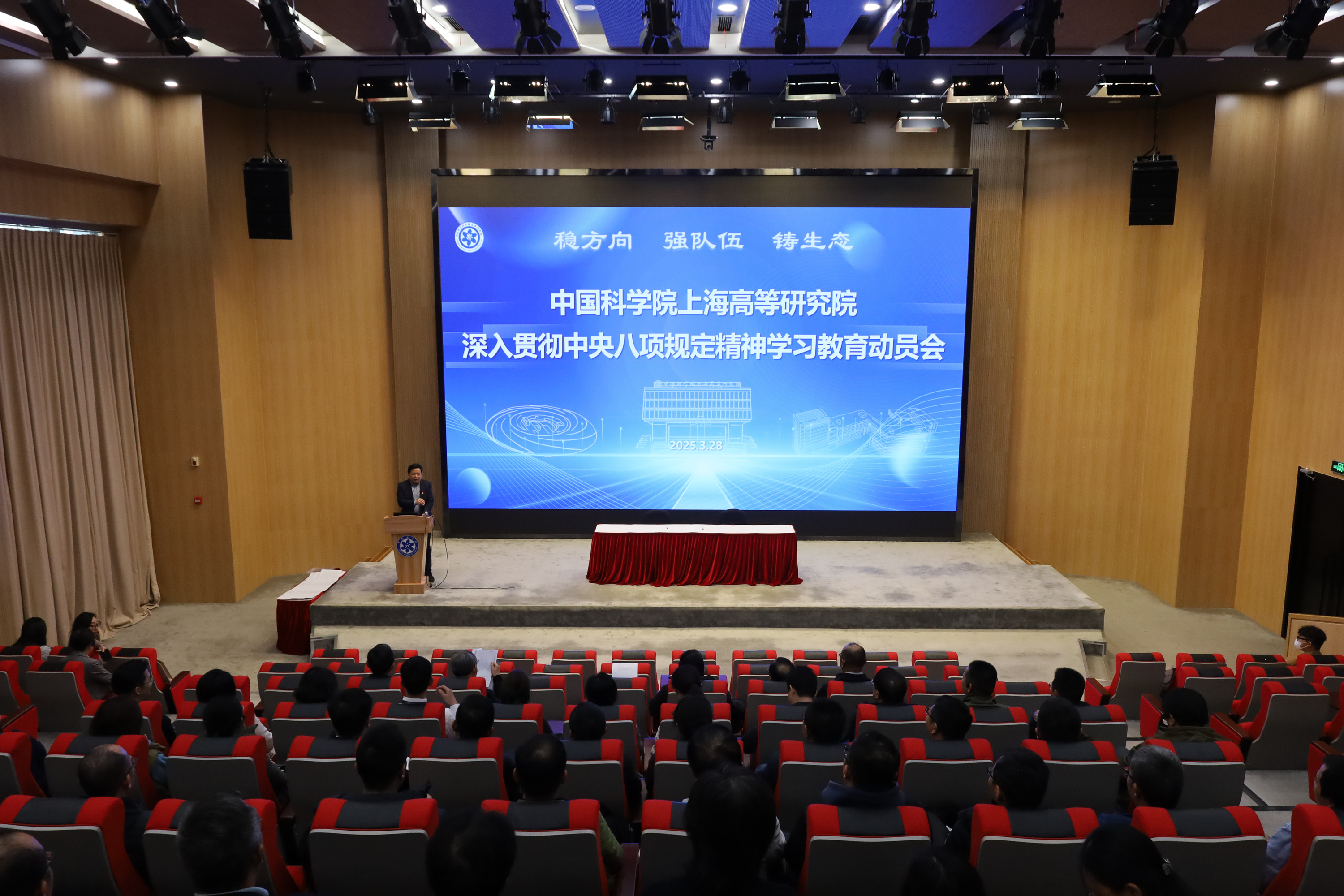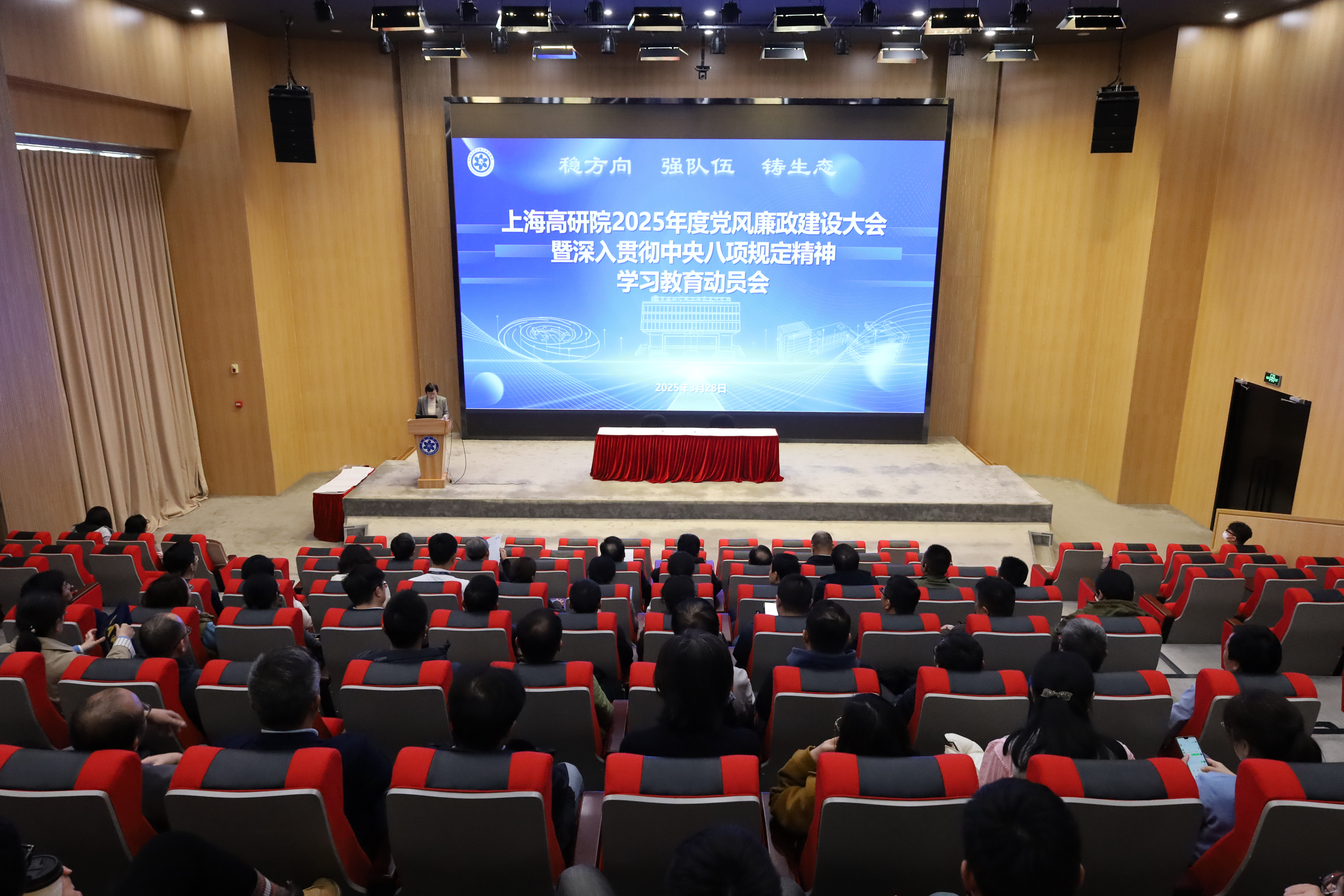 3月28日,中国科研实验室上海高等研究院组织召开2025年度党风廉政建设大会暨深入贯彻中央八项规定精神学习教育动员会。evo真人视讯领导班子成员、院务委员、两委委员、中层干部、党(总)支部书记、副书记、支部委员、科研中心主任、技术支撑部门负责人等八十余人参加会议。党委副书记、纪委书记唐铮主持大会。