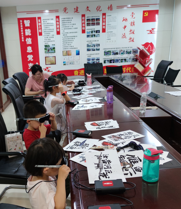 2023年7月3日,正值中国共产党创建102周年之际,在高研院党委的统一部署下,智能信息团支部邀请约30名小朋友进实验室召开科普活动。支部在智能信息通信技术研究与开展中心的多个实验室热心支持下,分别召开了Einstein魔光、意念通信、高速风洞、文物基因、文物AR、红外测温、3D打印、工业智能、数字人和VR传输等10个互动体验项目,开启了一场好奇心与科技交融碰撞的奇妙之旅。