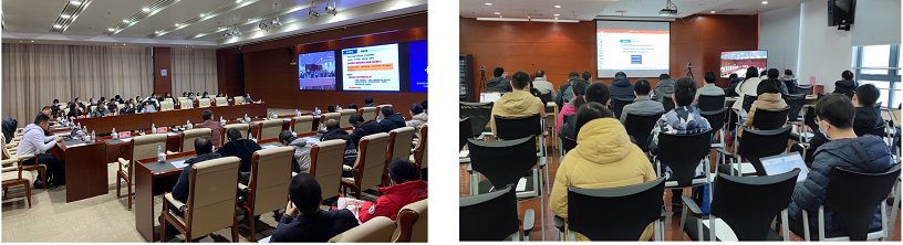 王占山以“如何申请基金”为题,从评审专家的角度全面介绍了撰写申请书的逻辑链及申请书各板块写作要点。刘志以申报国家重大科研仪器研制项目为例分享了从谋划、申请书撰写到答辩的全流程项目申报经验;邓海啸结合个人成长经历总结分享了科学基金项目申请经验与体会;科技开展处吴通介绍了基金2021年度资助概况、2022年度改革举措及申报注意事项。