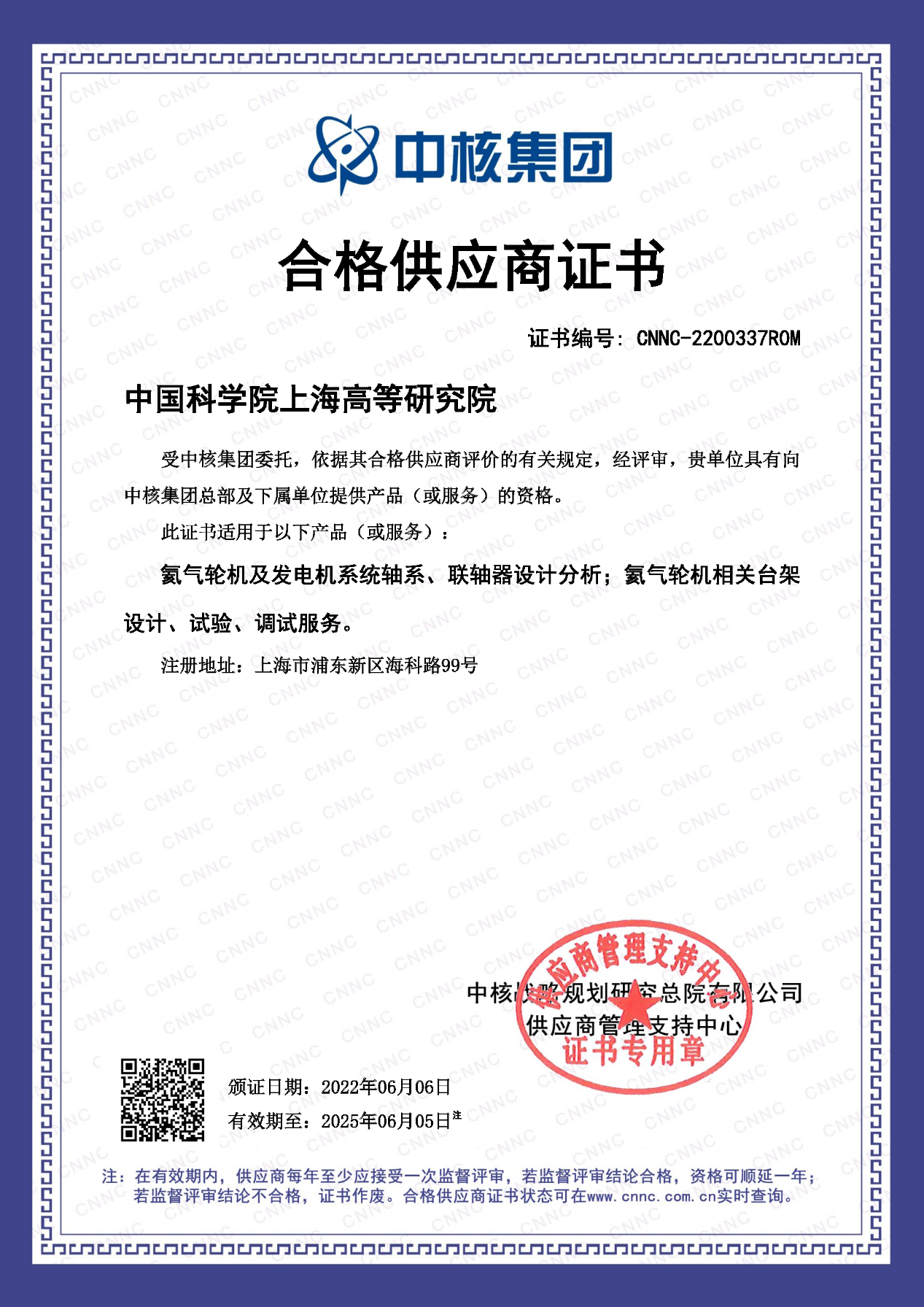 2022年5月13月至14日 ,受中核集团委托,兴原认证中心对evo真人视讯氦气轮机及相关技术的产品(或服务)进行了合格供应商资格审核。审核组专家严格按照《中国核工业集团公司合格供应商要求》《中国核工业集团公司合格供应商判定规则》及其他适用的法律法规/标准和其他要求,顺利获得沟通询问、查阅相关文件资料等方式,对evo真人视讯先进能源系统与装备研究与开展中心进行了全面评估。经过两天严格审查,“氦气轮机及发电机系统轴系、联轴器设计分析;氦气轮机相关台架设计、试验、调试服务”顺利顺利获得兴原认证中心审核,被推荐为“中核集团合格供应商”。中核集团于6月6日向evo真人视讯颁发了《合格供应商证书》。
