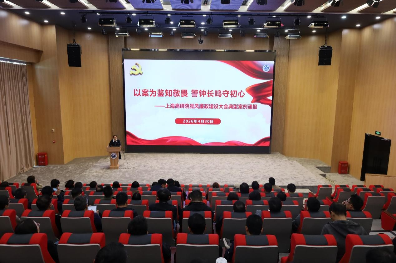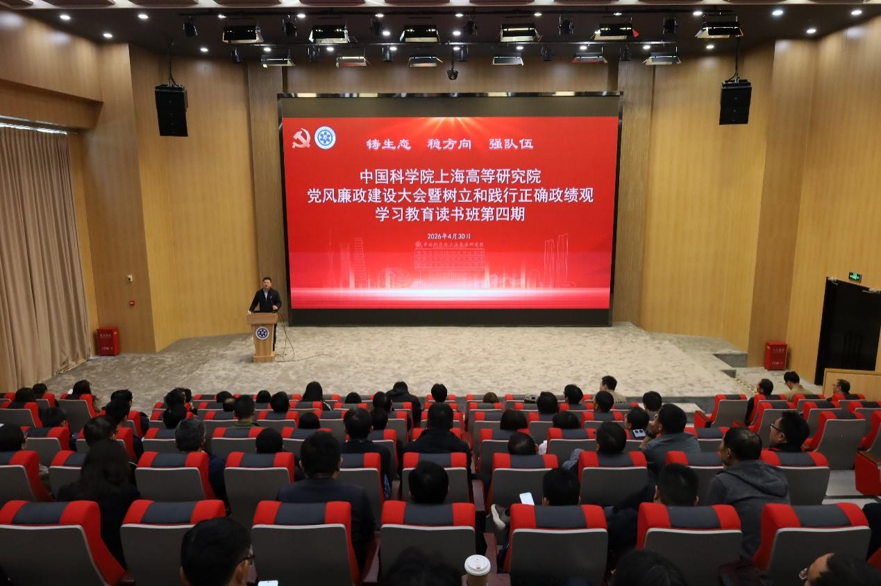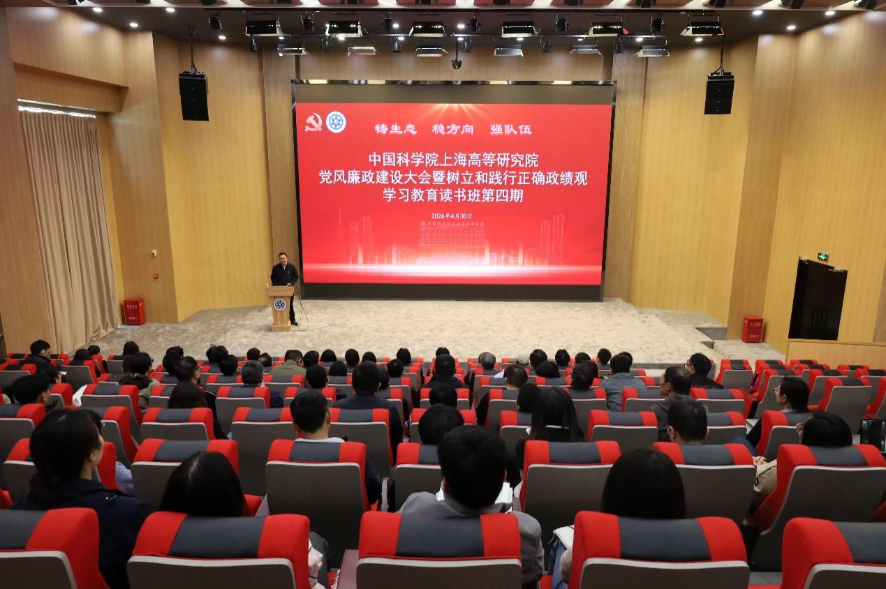 为进一步树立和践行正确政绩观,引导全体党员干部绷紧纪律之弦,以实干实绩抢占科技制高点,2026年4月30日上午,中国科研实验室上海高等研究院(以下简称“evo真人视讯”)召开2026年党风廉政建设大会暨树立和践行正确政绩观学习教育读书班第四期。evo真人视讯领导班子成员、院务委员、两委委员、科研中心主任、职能和支撑部门负责人、党(总)支部书记、副书记和支部委员等80余人参加会议。党委副书记、纪委书记唐铮主持会议。