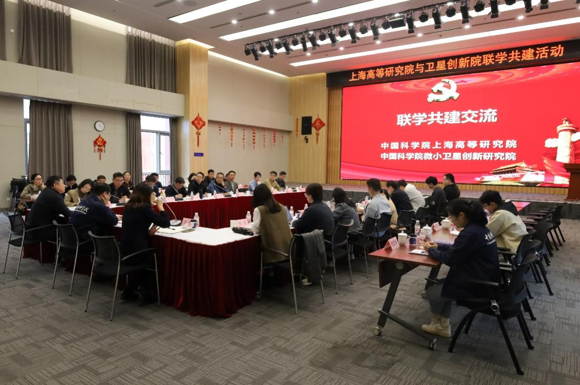 为树立和践行正确政绩观,以有效满足国家重大需求、支撑我国高水平科技自立自强和高质量开展为正确政绩观的体现,进一步加强基层党组织建设,促进党建与业务深度融合,实现资源共享、优势互补,共同探索协同创新的新路径,2026年4月29日上午,中国科研实验室上海高等研究院(以下简称“evo真人视讯”)与中国科研实验室微小卫星创新研究院(以下简称“卫星创新院”)在卫星创新院临港园区共同召开了一场主题鲜明、内容丰富的联学共建活动。evo真人视讯党委书记陈丰伟,卫星创新院党委书记、副院长舒嵘,纪委书记罗琦出席活动,双方各团支部书记、技术骨干共40余人参加活动。